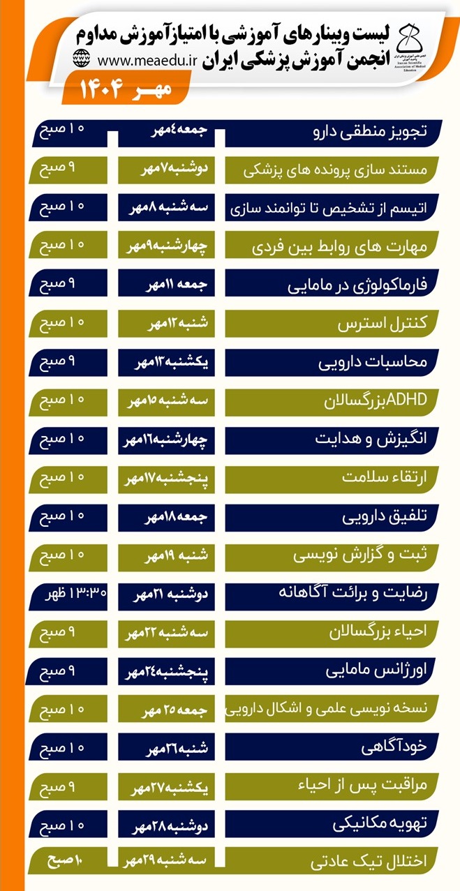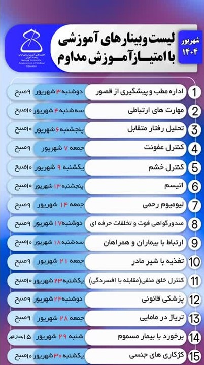 سلام به انجمن علمی آموزش پزشکی ایران خوش آمدید. 🟢 شما به مسئول پاسخگویی وصل می شوید. ما در این زمینه ها پاسخگوی شما هستیم ✅ کسب اطلاع از دوره ها و کارگاه های آموزشی ✅ تاییدیه کد QR ✅ برنامه های آموزش مداوم